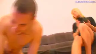 Порно видео с Kingstong, Jamaica Retro Models - Белокурая русская госпожа Irina надела черную водолазку и короткую юбку чтобы доминировать над голым парнем. Мужик ползает перед доминой на четвереньках, а сучка сидит на диване и приказывает поклоннику