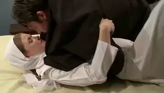 Порно видео HD, Довел до оргазма - Секс в монастыре получила молодая монашка Lara Brookes, которая пригласила в келью возлюбленного Tyler Nixon. Мужик расположился с девушкой в кровати и после траха киски довел телочку до оргазма большим хером