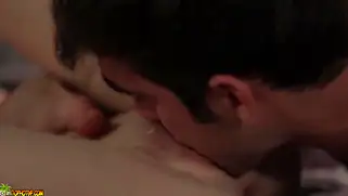 Блондинка вволю насосалась и наебалась в постели с парнем