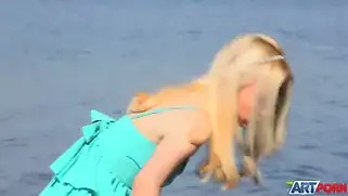 Порно видео HD, Блондинка - Красивая молодая блондинка сидит на лодке перед берегом в зеленом платье. Девушка стягивает верхнюю одежду и тонкие трусики. Голая красотка принимается теребить клитор пальцами и получает оргазм от мастурбации