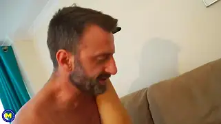 - Бородатый тип ебется со своей старой бабой и занимается оральным сексом. Она сосет большой хуй, а он вылизывает дырочку между ног, а затем много спермы выплескивается ей на вагину из пениса. Мужик стонет и кончает, выплескивая фонтан спермы из своего ствола. Баба тоже кончает во время такого страстного порева.