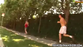 - Блондинка с удовольствием дрочит большой хуй опытного бегуна