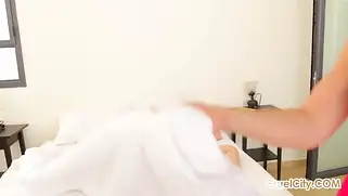 Русскую кралю с натуральными титьками классно трахнут, заливая лицо спермой