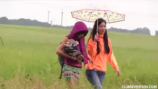 Секс лесбиянок под дождем. Порно видео с Suzy Rainbow, Daphne J