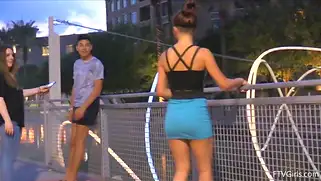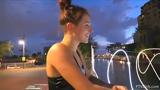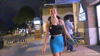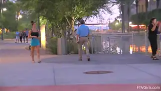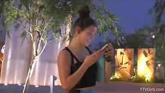 Красотка Leah Gotti вечером на курорте публично обнажается и гуляет