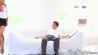 Порно видео HD, Кончил на язык - Зрелая ухоженная блондинка с большими сиськами Tanya Tate решила потрахаться с молодым парнем. Дама недолго обжималась с чуваком на диване и позволила сунуть хуй в рот. После минета бабу трахнули и кончили на язык