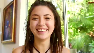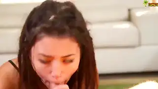 Попозировав немного у бассейна, чика приступает к убойному минету