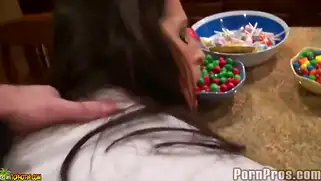 Отсос от первого лица и ебля на полу кухни грудастой брюнетки