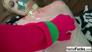 Порно видео Толстые, Кляп - Парень обматывает бабу пищевой пленкой так плотно и туго, что она пошевелиться не может от такого и будет мычать, когда во рту кляп. Она потом будет стонать через него, потому что муж не просто БДСМ порно хочет, а подрочить её вибратором, пока она в неподвижном состоянии и ничего не может сделать или двинуться.