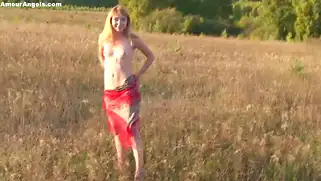 Порно видео HD, С сиськами - Веселая молодая модель со светлыми волосами Nikki позирует на лугу полностью обнаженная. Девушка с маленькими сиськами улыбается оператору, поворачивается с бока на бок, встает раком чтобы показать киску