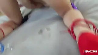Девушка геймер не против потрахаться с папиком — спермой залили колготки после ебли