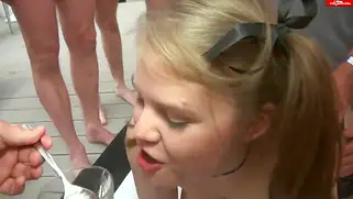 Сперма не помещается в рот красотки Laura Teen после буккаке