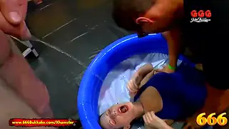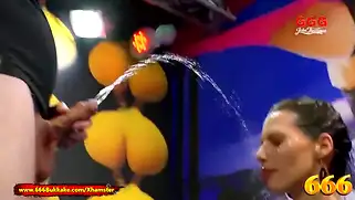 - Высокая баба сосет несколько членов и потом начинается страстная оргия с толпой мужиков, которые поливают девушку и устраивают ей золотой дождь. Она получила много денег за то, что будет участвовать в порно с мочой, поэтому парней советь не грызет, что они по сути обоссали девушку с ног до головы после орального траха.