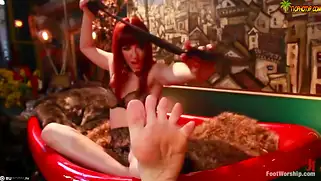 Невероятный фут фетиш в бдсм стиле со зрелой темноволосой телочкой