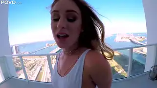 Порно видео HD, Минет от первого лица - Сексуальная телочка Daisy Stone позирует перед парнем на балконе и заходит в спальню чтобы трахаться от первого лица. Девушка ебется с оператором, делает минет и купается в сперме самца по ходу траха писи