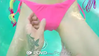- Парень затащил девушку в бассейн и там стягивает розовые трусики с неё и начинает ласкать между ног и сувать большой член в ротик. Милашка естественно кончает от ебли с парнем, у которого такой большой член и занимается сексом прямо в воде. Она отменно сосет длинный член и естественно получает сильный оргазм.