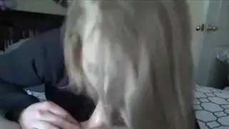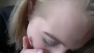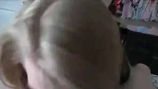 Пухлая блондинка лижет яйца и сосет хуй парня от первого лица