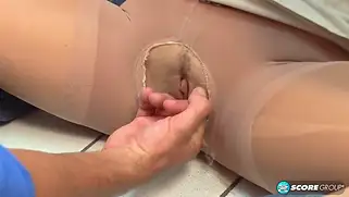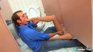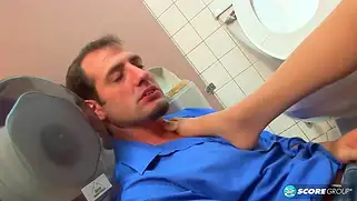 Красотке в туалете Brandon Jes облизали ноги и стали трахать