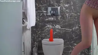 Порно видео HD, Дрочит манду - Сисястая русская студентка с темными волосами Clary оказалась под душем и стала дрочить манду красной секс игрушкой. Девушка включила воду и стала облизывать самотык, после чего села на него верхом и кончила