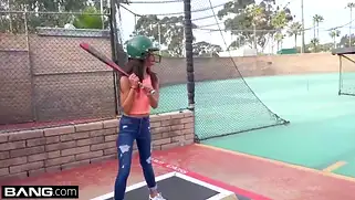 - Сексуальная красотка будет показывать парню своё худое тело и то, как она машет битой на площадке перед этим. Это возбуждает парня и он приглашает Aria Skye заняться порно с ним. Милашка соглашается и начинается секс со спортивной шлюшкой, которая имеет очень худое тело и тугую киску для ебли в неё.