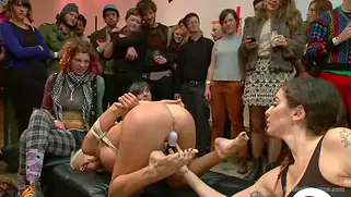 Порно видео HD, Дрочит большой - Красивая блондинка с большой грудью Courtney Taylor публично трахается с парнями и женщинами в частном клубе. Сучку поставили раком и стали дрочить клитор игрушками, госпожа помогала рабыне получить оргазм