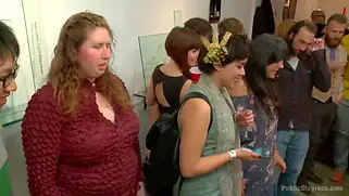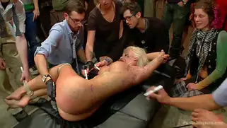 Красивая блондинка с большой грудью публично трахнута в дырки
