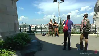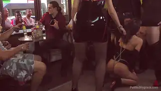 Порно видео HD, Бдсм шоу - Изящная смуглая рабыня Bella Beretta получила групповой трах пизды и рта во время бдсм шоу. После публичной прогулки с зрелой госпожой девушку стали трахать в ночном клубе, где телочке накончали в рот