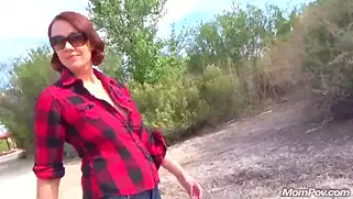 Пикапер снял рыжую зрелую бабу и трахнул на свежем воздухе