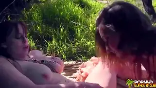 Две пошлые лесбиянки решили устроить горячий секс на природе