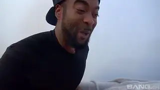 Блондинка отсосала большой хуй мулата и получила сперму на лобок