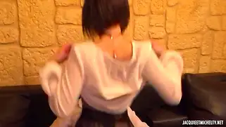 Порно видео с Kingstong, Jamaica France Girls - Озабоченная француженка в темных капроновых чулках и с большим силиконовым бюстом ебется с мужиком на кожаном диване. Сучка просит испытать свои буфера на сперму и мужику приходится слить кончину на дойки