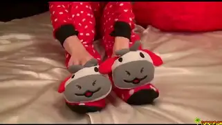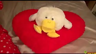 Брюнеточка раздевается в постели и начинает играть со своей кисой