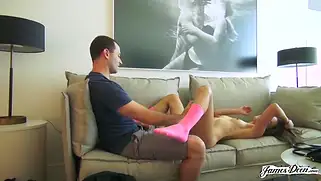 James Deen - Девушка прыгает на члене парня, который трахает её в ротик, а потом в киску. Это James Deen, а худенькая красотка открывает ротик после ебли на диване и ждет, когда туда будет выплескиваться густой сперма из залупы приятеля. Она чуть не подавилась, когда мощная труся ударила в горло, но быстро продолжила сосать хуй.
