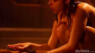 Красивое порно под струями воды для жопастой Antonia Sainz