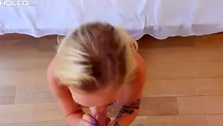 Голубоглазая блондинка с отличной задницей классно прыгает писькой на члене