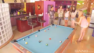 Молодые свингеры с телками сняли бильярдную и стали трахаться