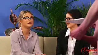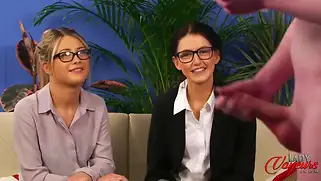 - Две девушки хихикали на диване, пока перед ними раздевался парень. Он снимает трусы и начинает мастурбировать пенис, который постепенно становится большим. Естественно телки замечают момент оргазма и смотрят, как густая спермы выстреливает из залупы и падает на ковер густыми каплями. Они раздвигают ноги где видно трусики.