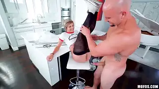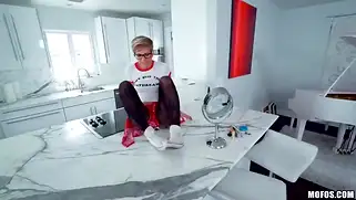 Порно видео HD, Ебля - Очкастая светловолосая сучка в чулках и с короткой стрижкой сосала хуй парня от первого лица и трахалась перед камерой. Телочка в спортивной обуви стояла раком и кончала на члене, ебля завершилась камшотом