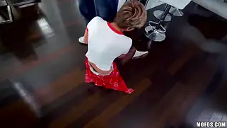 Фурри порно с азиаточкой жопастой в костюме после утомительного рабочего дня
