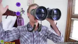 Подглядел в бинокль за сочной блондинкой и обкончал лицо суки