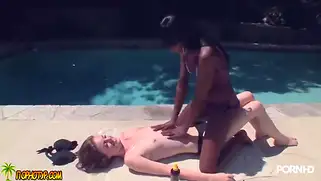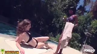 Негритянская лесби шалит с белой сучкой, вылизывая ей пизду