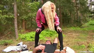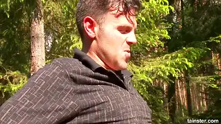 - Кудрявая шалава в чулках будет писать на член мужика, когда слезает с него и естественно телка будет трахаться в разных позах с ним на свежем воздухе. Её возбуждает порно на природе, а конкретно в лесу, от чего влажная дырочка становится еще более влажной.