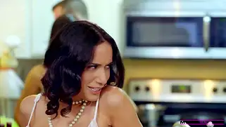 Жадно вылизывает письку, посадив кралю на стол перед домашним сексом на кухне