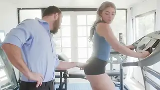 Жопастая молодая сучка в тренажерном зале ебется с тренером