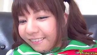 Мужик трогает и бреет аппетитную пизденку милой японочки в юбке