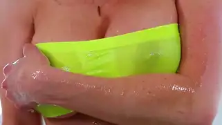 Порно видео HD, Большими сиськами - Зрелая красотка в масле и с большими сиськами позирует перед молодым любовником и делает чуваку куни. Шлюшка сосет длинный хер и подставляет пизду, чувак доводит шалаву до оргазма и заливает кончиной в итоге