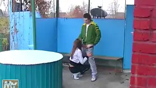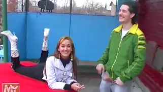Русская шлюшка в кружевных чулочках ебется в осеннем Питере