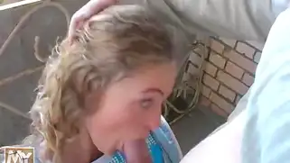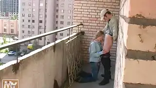 Кудрявую русскую блондинку пикапер поимел в голову на балконе