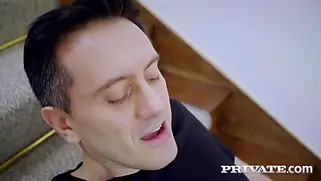 Порно видео В Сперме, На лестнице - У девушки в самом разгаре написание постельной сцены для её новой книги и тут она сильно возбуждается во время писанины. Красотка хочет секс и будет воображать, как её герой из книжки насаживает на свой большой член и происходит все это непотребство на лестнице, где она и сосет хуй большой, а после орального порно начинается ебля в киску.