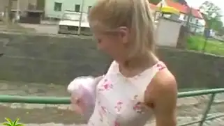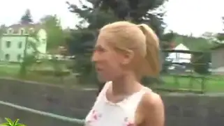 - Смазливая блондинка за деньги лакомится спермой пикапера